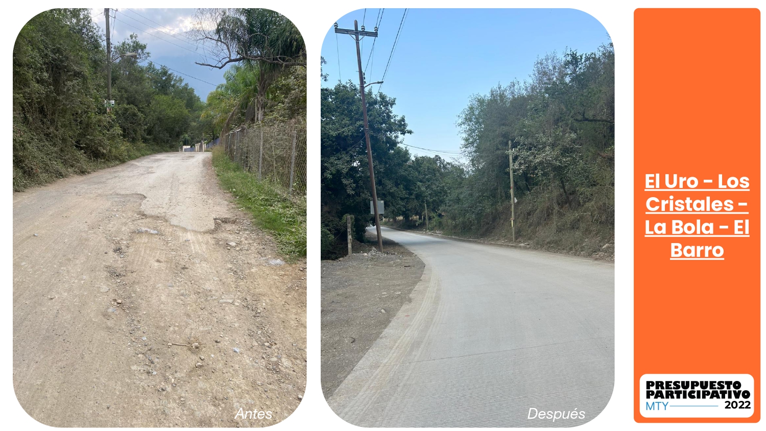El proyecto ganador del 2022 del sector El Uro - La Bola - Los Cristales - El Barro fue "Super parque vistancia" pero tras revisar la propuesta, internamente, con vecinos y en reuniones con distintas dependencias y la constructora, se inform贸 a los vecinos del sector en una junta, que el proyecto ganador del Presupuesto Participativo 2022 no podr谩 ser llevado a cabo debido a que la colonia no ha sido entregada a municipio. Por tal motivo, y con previa autorizaci贸n del Consejo Municipal de Presupuesto Participativo, se llev贸 a cabo una asamblea extraordinaria con vecinos del sector el d铆a 6 de septiembre de 2023 en donde se propusieron y votaron distintas propuestas. Resultando con el mayor n煤mero de votos y con factibilidad positiva la propuesta de "Repavimentaci贸n Campestre El Barro", la cual se llevar谩 a cabo al ser la ganadora.