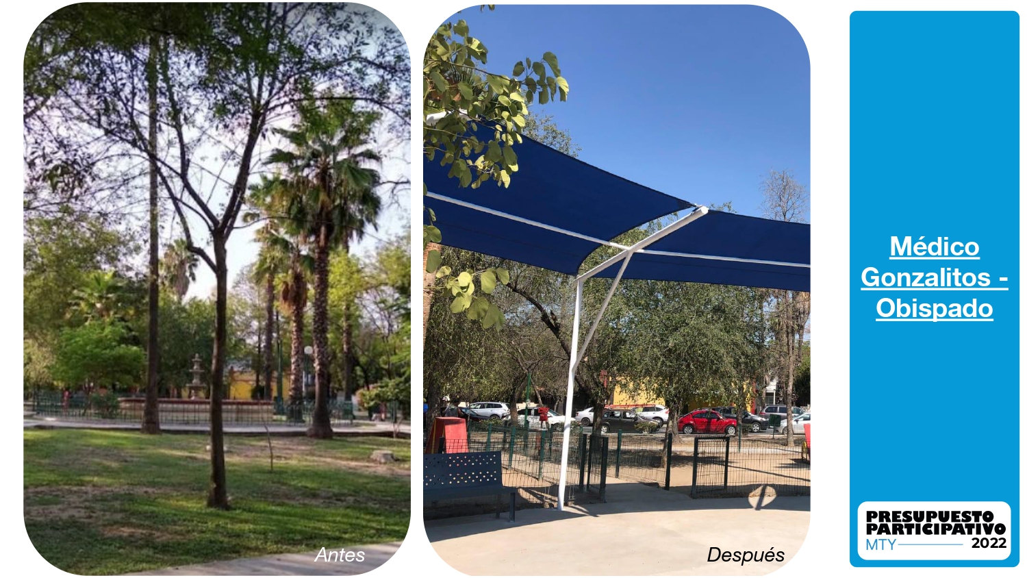 Rehabilitación de la plaza incluyendo la renovación de andadores peatonales, una velaria en el centro de la plaza y equipamiento urbano para parques.