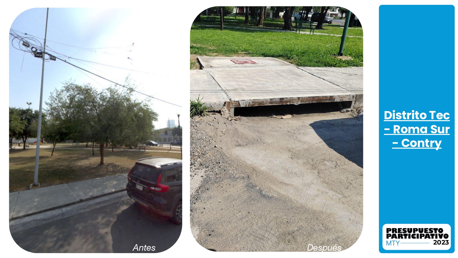Construcción de 5 cisternas de captación de agua pluvial en diferentes parques de la Colonia Contry.
