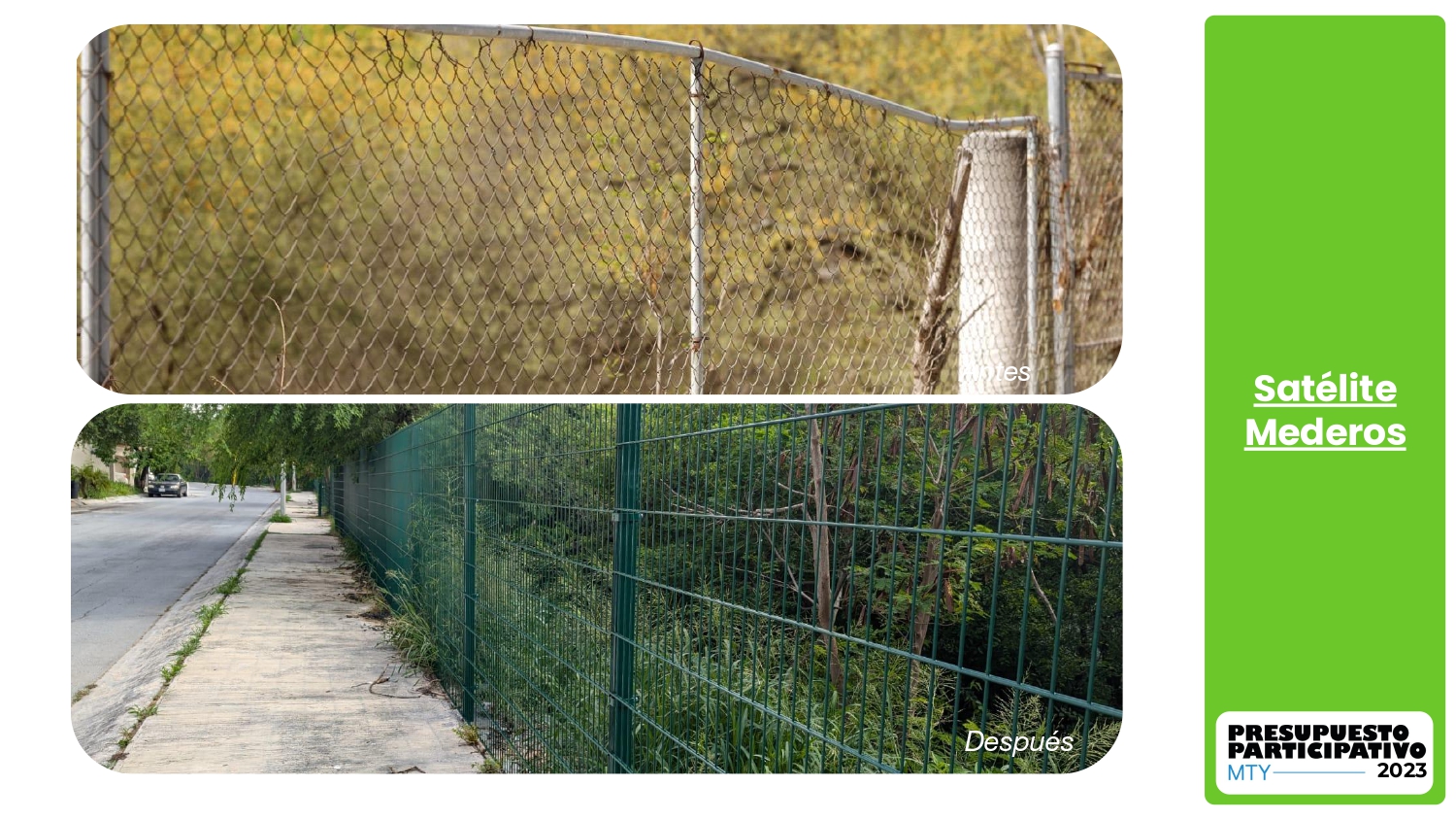 Renovación de la malla que delimita la calle Pedregal de la Rivera con el Parque Río La Silla. Incluye la desinstalación de la malla ciclónica actual y la colocación de reja de acero nueva.